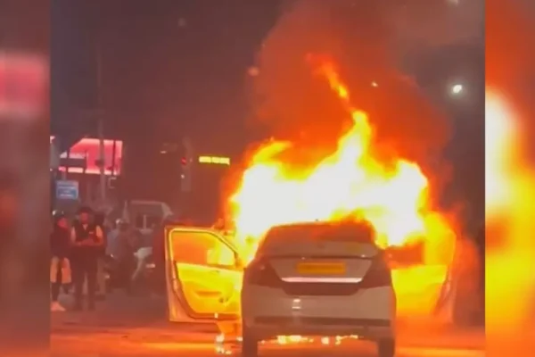 चलती कार में लगी आग बाहर कूद कर बचाई चालक ने जान